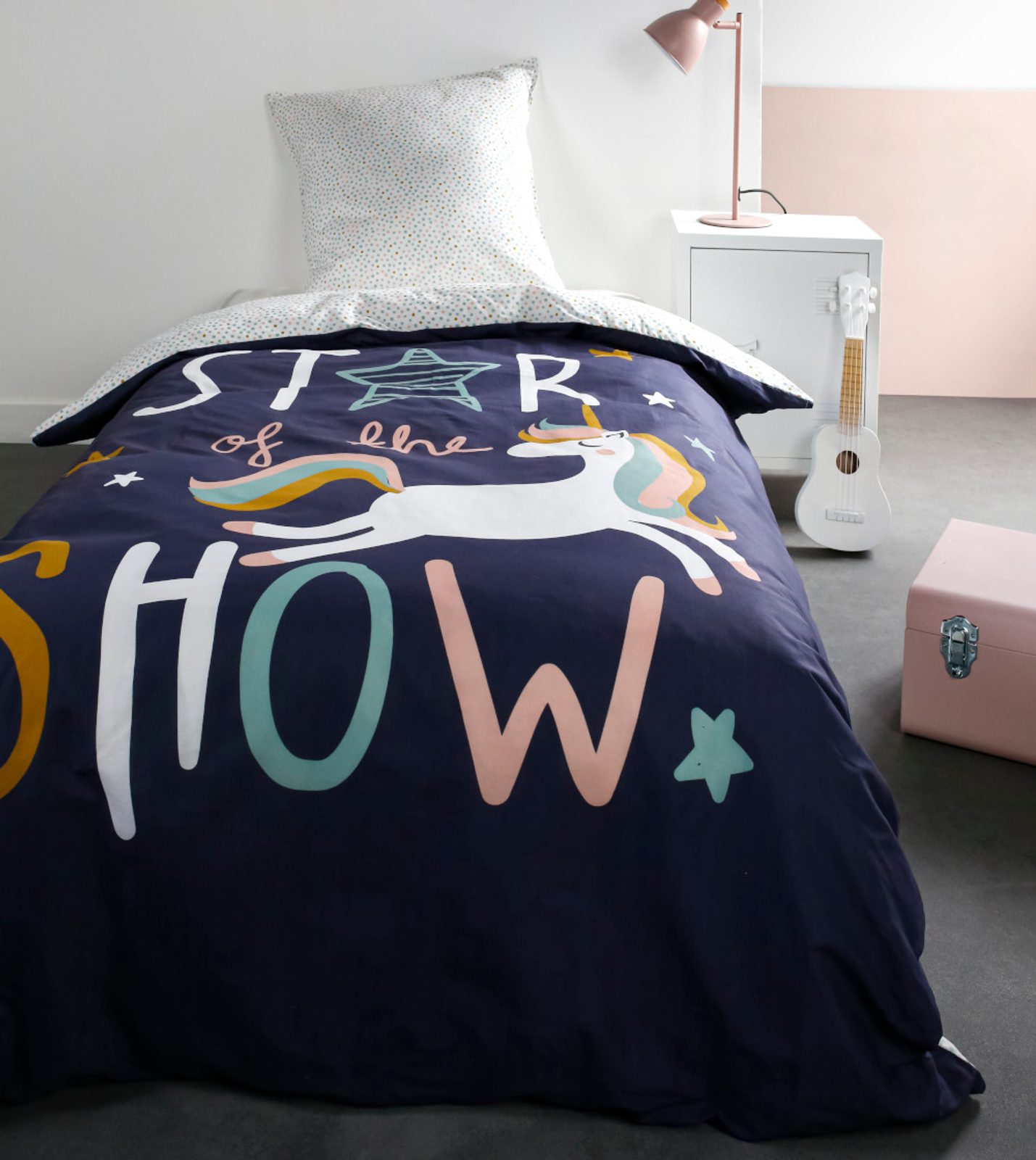 Oboustranné bavlněné povlečení do dětského pokoje.