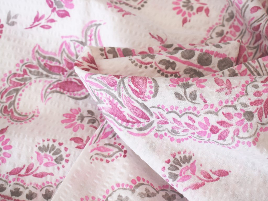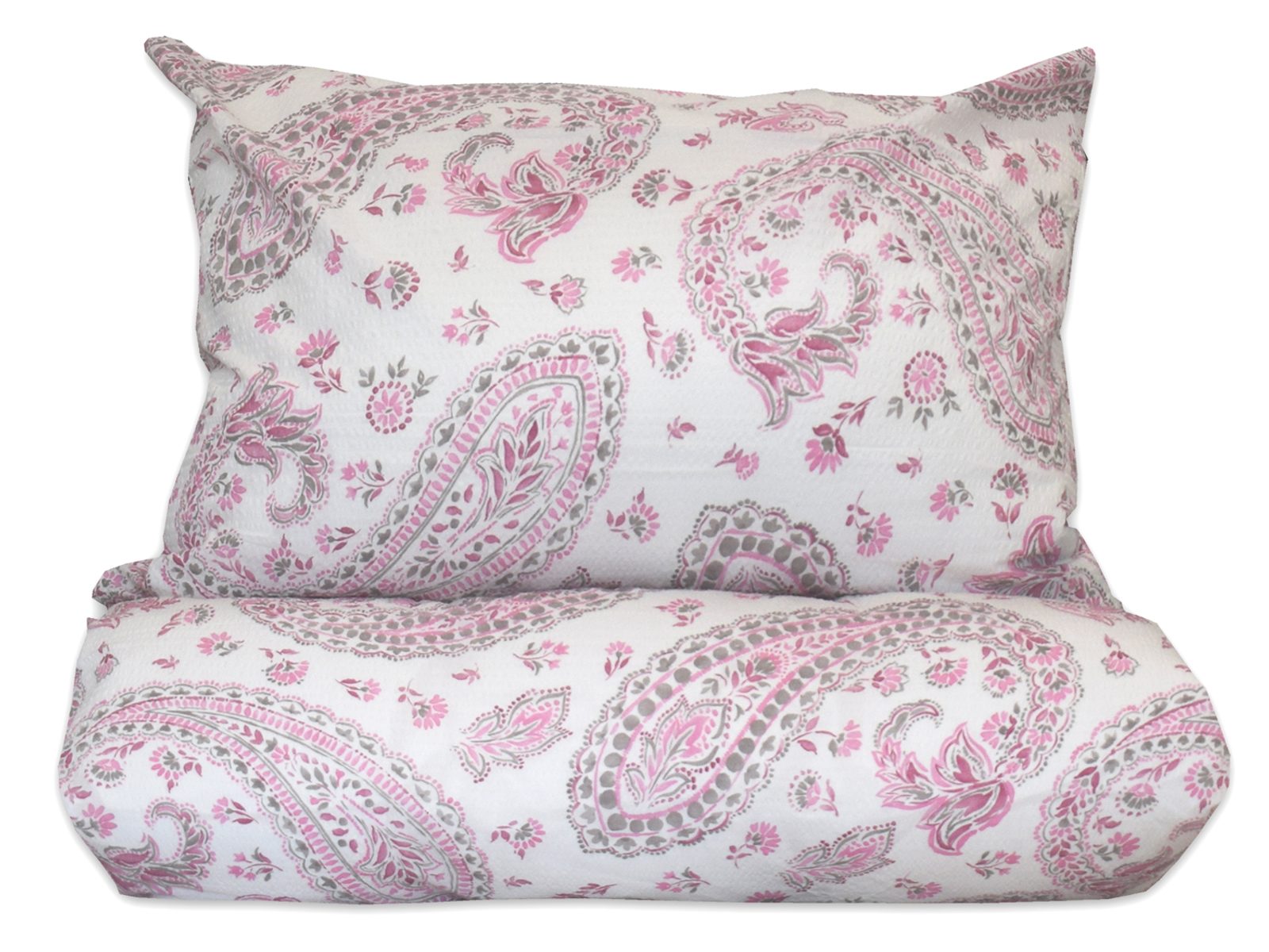 Jemné krepové povlečení s orientálním vzorem paisley v růžových odstínech.
