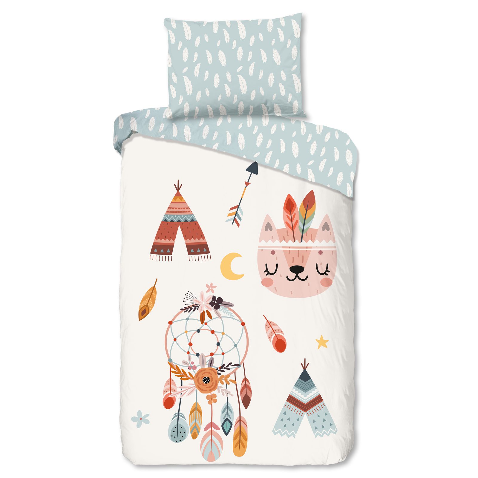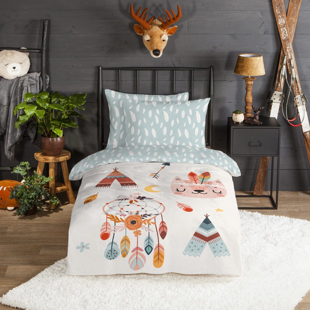 Povlečení s barevným indiánským motivem. Flanelové bavlněné povlečení, která zahřeje a pohladí v chladnější části roku.