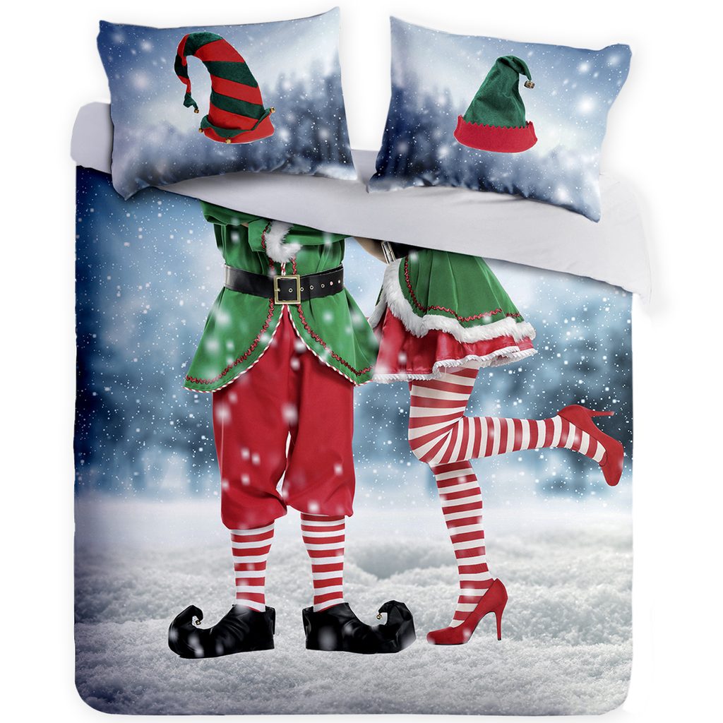 Vánoční povlečení pro paní elfovou a pana elfa. Oblečky bez zdlouhavého převlékaní. Vtipné povlečení v dvojitém rozměru - ideální jako dárek. Italský design a výroba, skvělá kvalita. 100% hladká bavlna.
