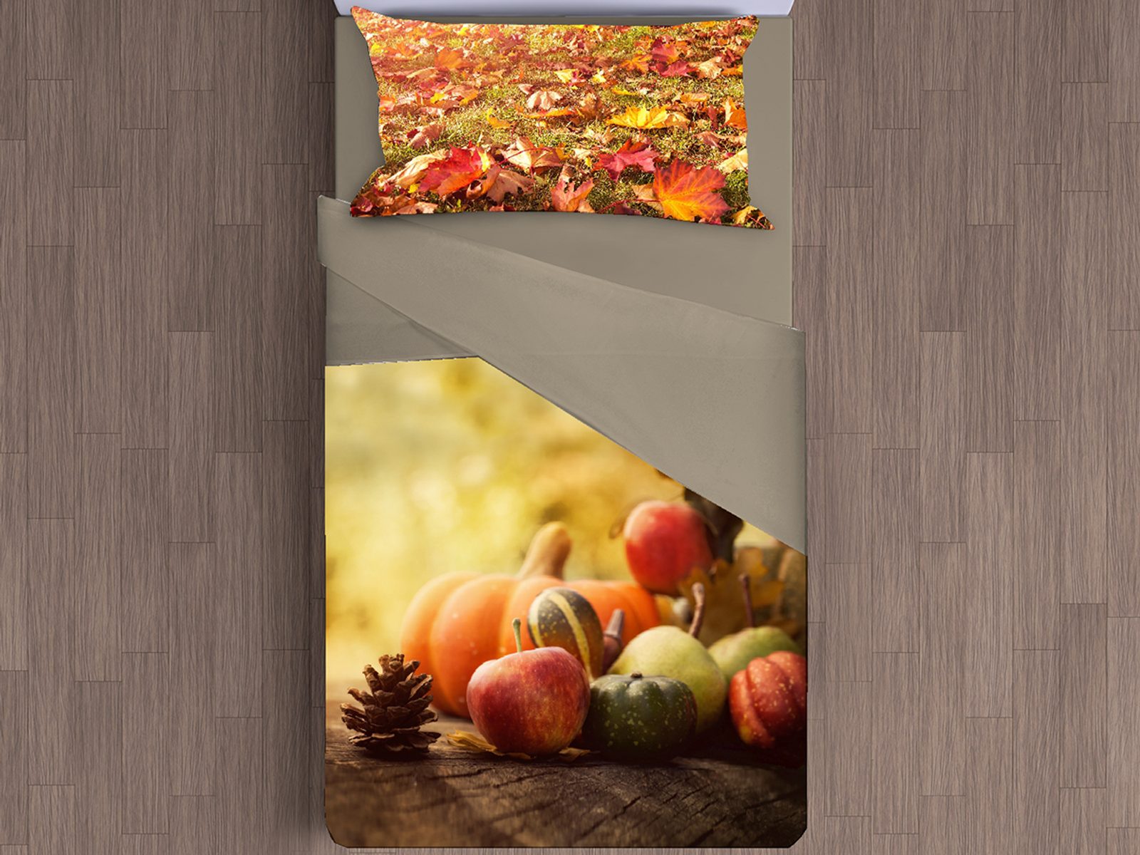 Prostorový motiv z jedné strany povlečení, zadní strana šedobéžová bez potisku.