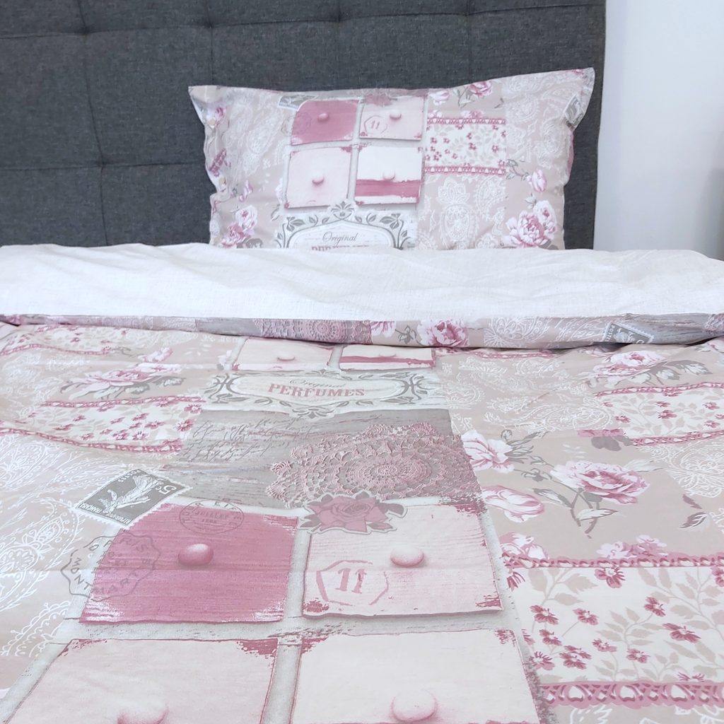 Italské povlečení z bavlna. Italský design a výroba. V odstínech šedobéžové a starorůžové, v oboustranném provedení.
