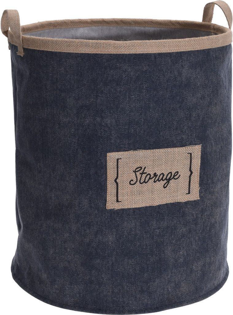 Vyztužený denimový koš na prádlo s jutovými uchy.