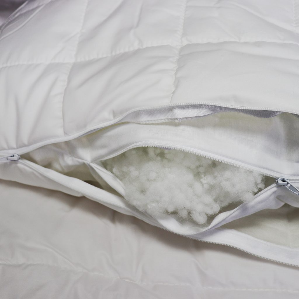 Polštáře jsou tvořeny dvojím vakem pro pohodlnější praní - nemusíte prát celý polštář, ale stačí sundat vnější povlak. Výplň je tvořena z kuličkového vlákna pro zachování tvarové stálosti. Polštáře jsou středně vysoké, lze k nim dokoupit náhradní náplň pro doplnění a zvýšení výšky. Oba vaky jsou opatřeny zipem, není tak problém náplň přidávat či odebírat.