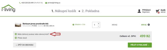 Nezapomeňte tedy v přehledu objednávaného zboží po kliknutí na "Máte dárkový certifikát nebo slevový kód?" zadat slevový kód - sleva se po zadání kódu a potvrzení do objednávky propíše.
